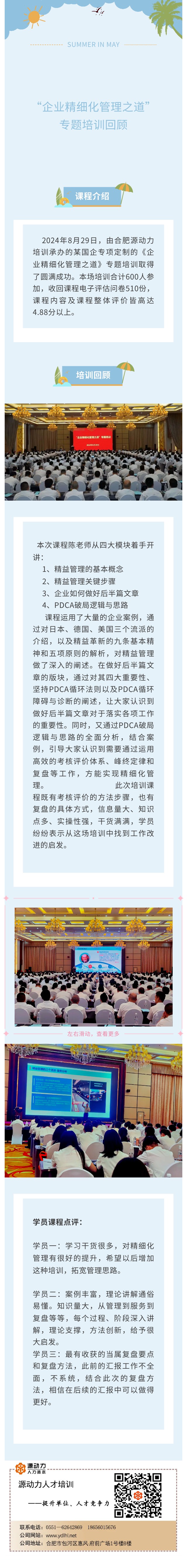 【源動力培訓】——企業定制專題:《企業精細化管理之道》專題培訓取得圓滿成功!